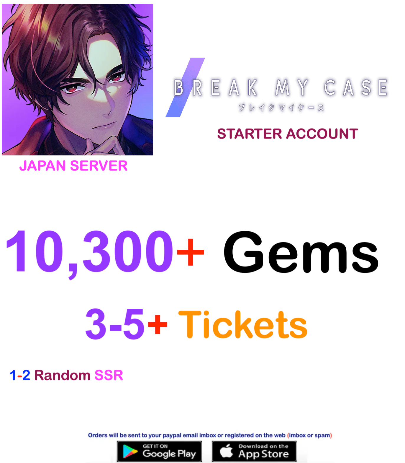 ⭐ Japan Server⭐ Instant Delivery⭐ 10,300 Gems + Break My Case Starter Account