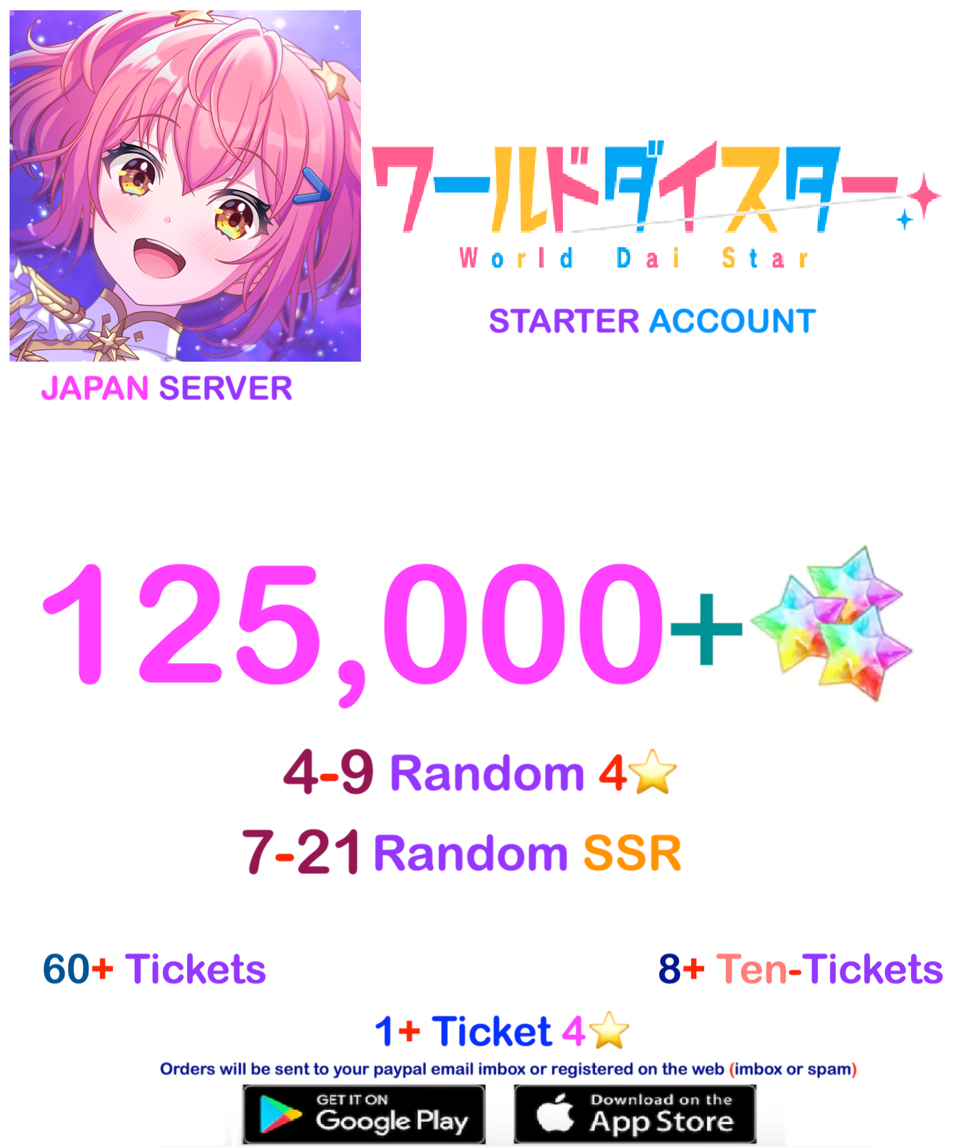 ⭐ Japan Server⭐ Instant Delivery⭐ 125,00 Gems World Dai Star: Yume no Stellarium Starter Account