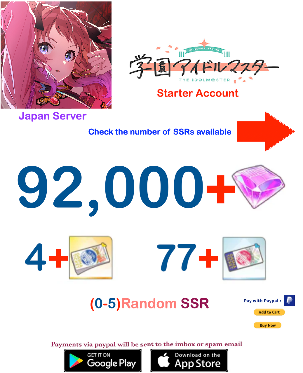 (Japan Server) 92.000 Gems Gakuen Idolmaster Starter Account