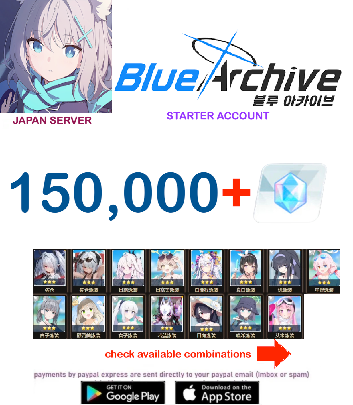 ⭐JAPAN SERVER⭐150,000 Gems⭐ Blue Archive Starter Reroll Account