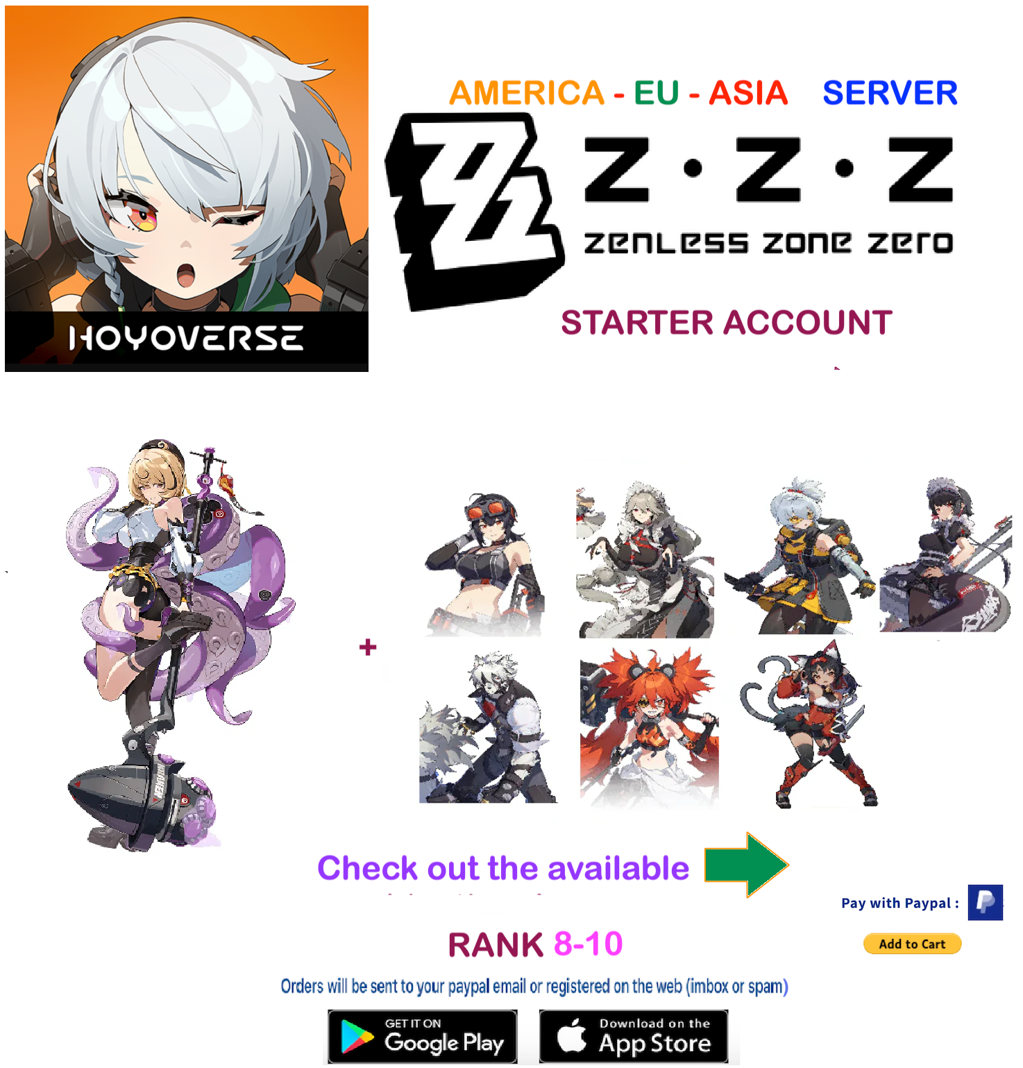 (All Server) Yidhari - Zenless Zone Zero Starter Account (RANK 8)