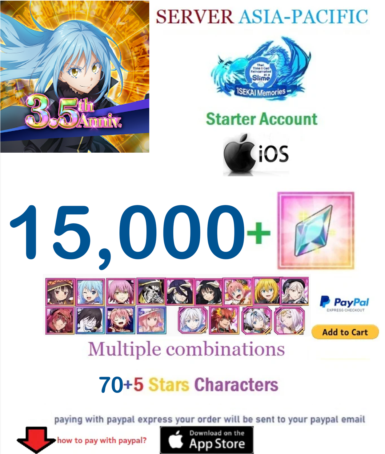 [GLOBAL/Asia-Pacific/IOS Version] 15000+ Crystals Multiple combinations Slime isekai Memories Starter Reroll Account