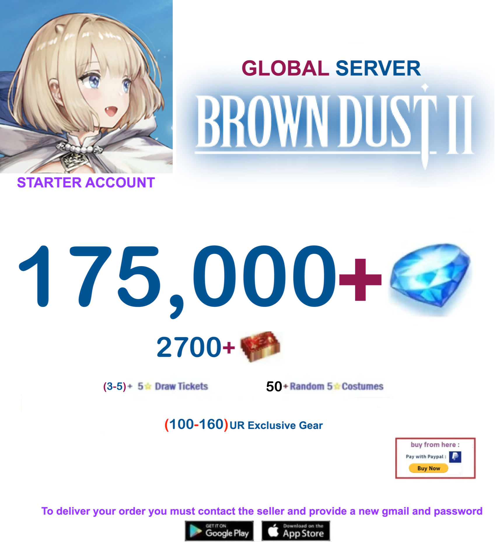 [Global Server/Unlinked] 175,000 Gems Brown Dust 2 Starter Starter Account
