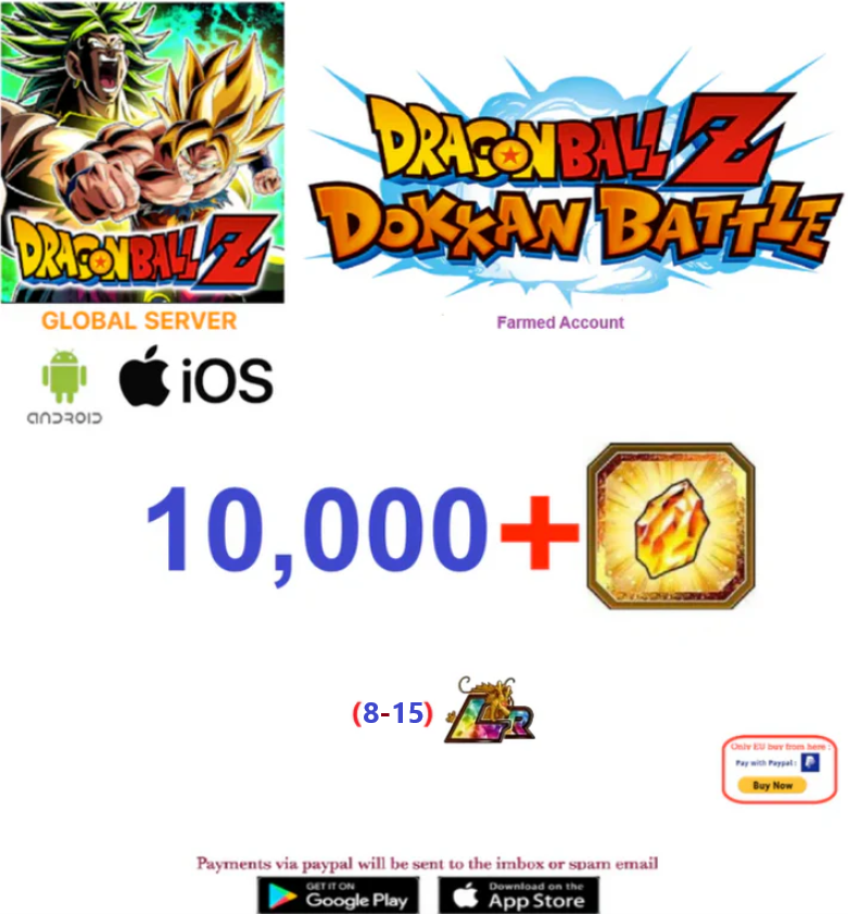 (Global Server)(ANDROID/IOS VERSION) 10,000 + Dragon Stones Dragon Ball Dokkan Battle Farmed Account