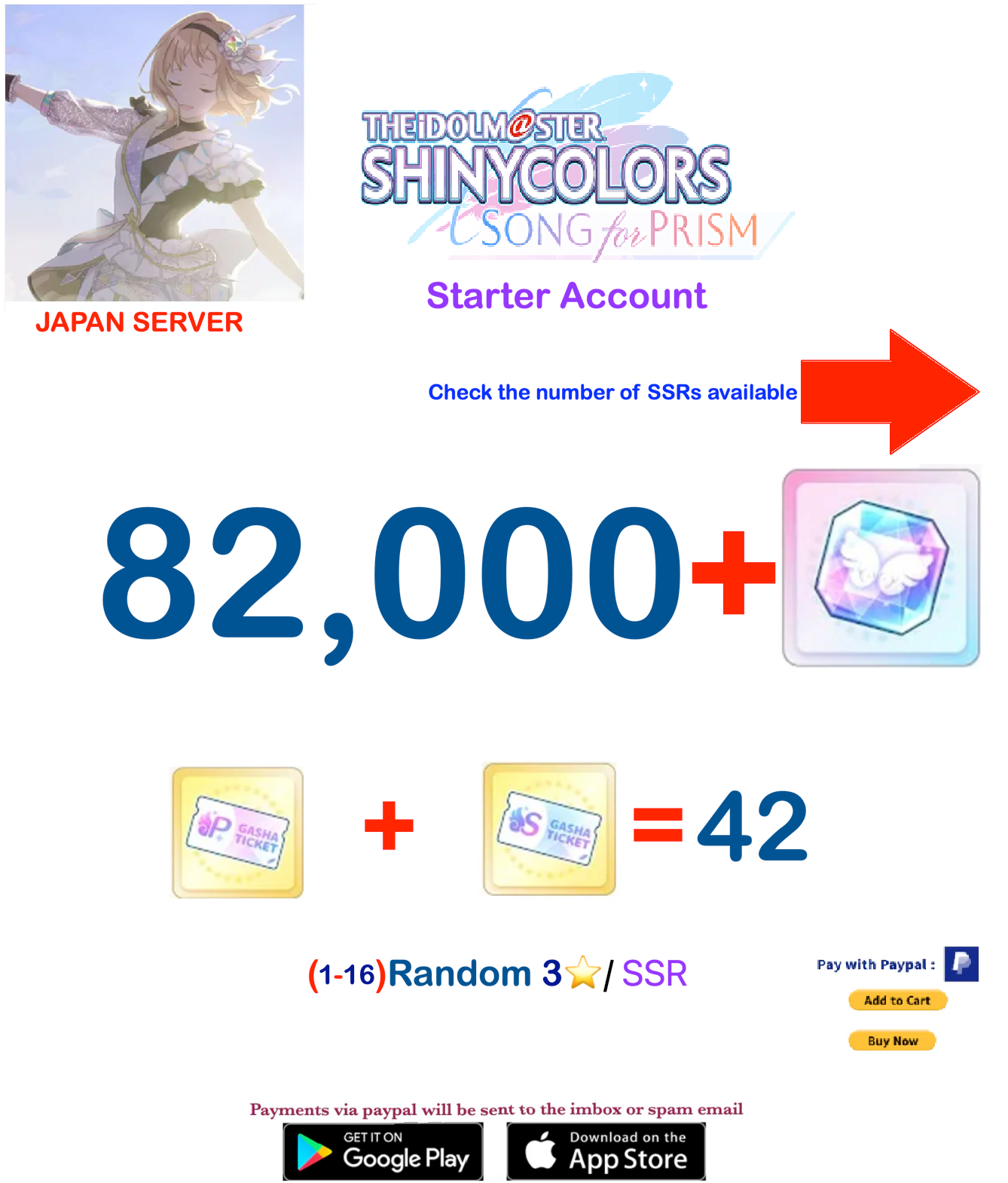 (Japan Server) 82.000+ Prism Jewels Idolmaster Idolmaster Shiny Colors Song for Prism Reroll Starter Account