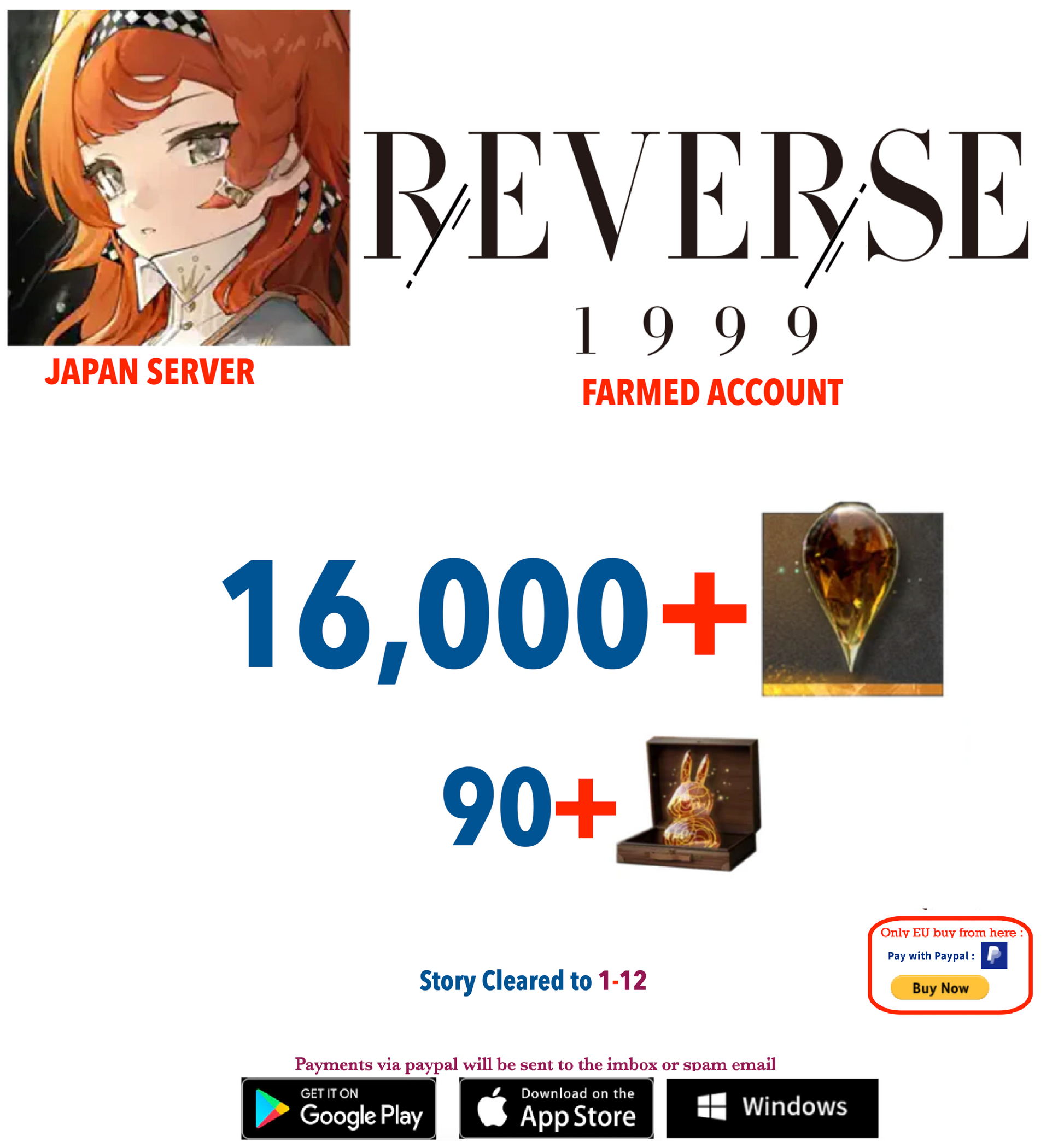 [JAPAN SERVER]16,000+Gems Reverse: 1999 Farmed Account
