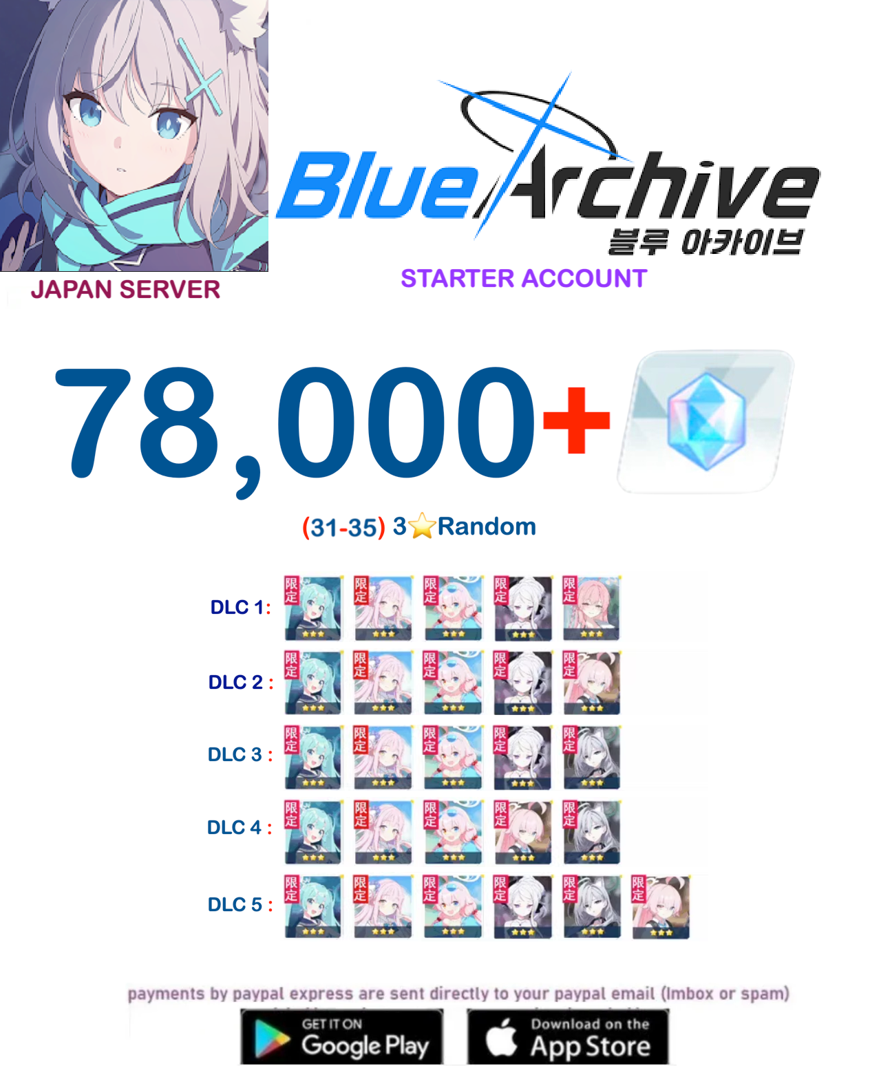 ⭐JAPAN SERVER⭐78,000+ Gems⭐ Blue Archive Starter Reroll Account