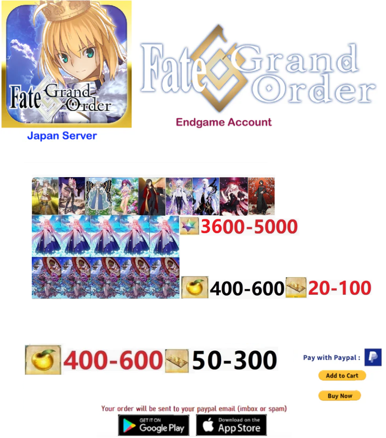 [JAPAN SERVER] Custom Fate Grand Order FGO Endgame Account v1