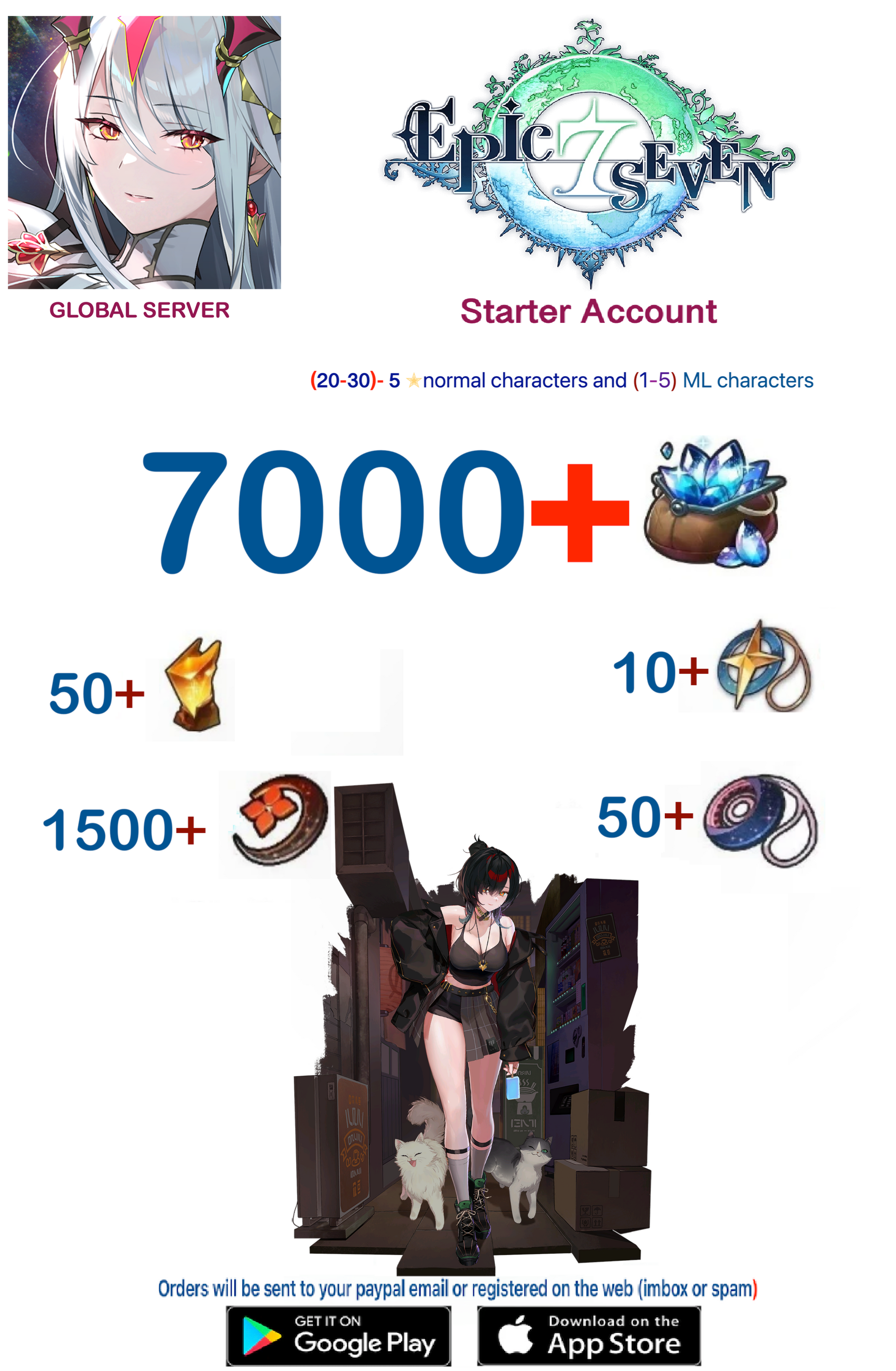 ⭐ [Global Server ] ⭐ 7000 -8000 Bystander Hwayoung Skystone EPIC SEVEN Fresh Starter Account