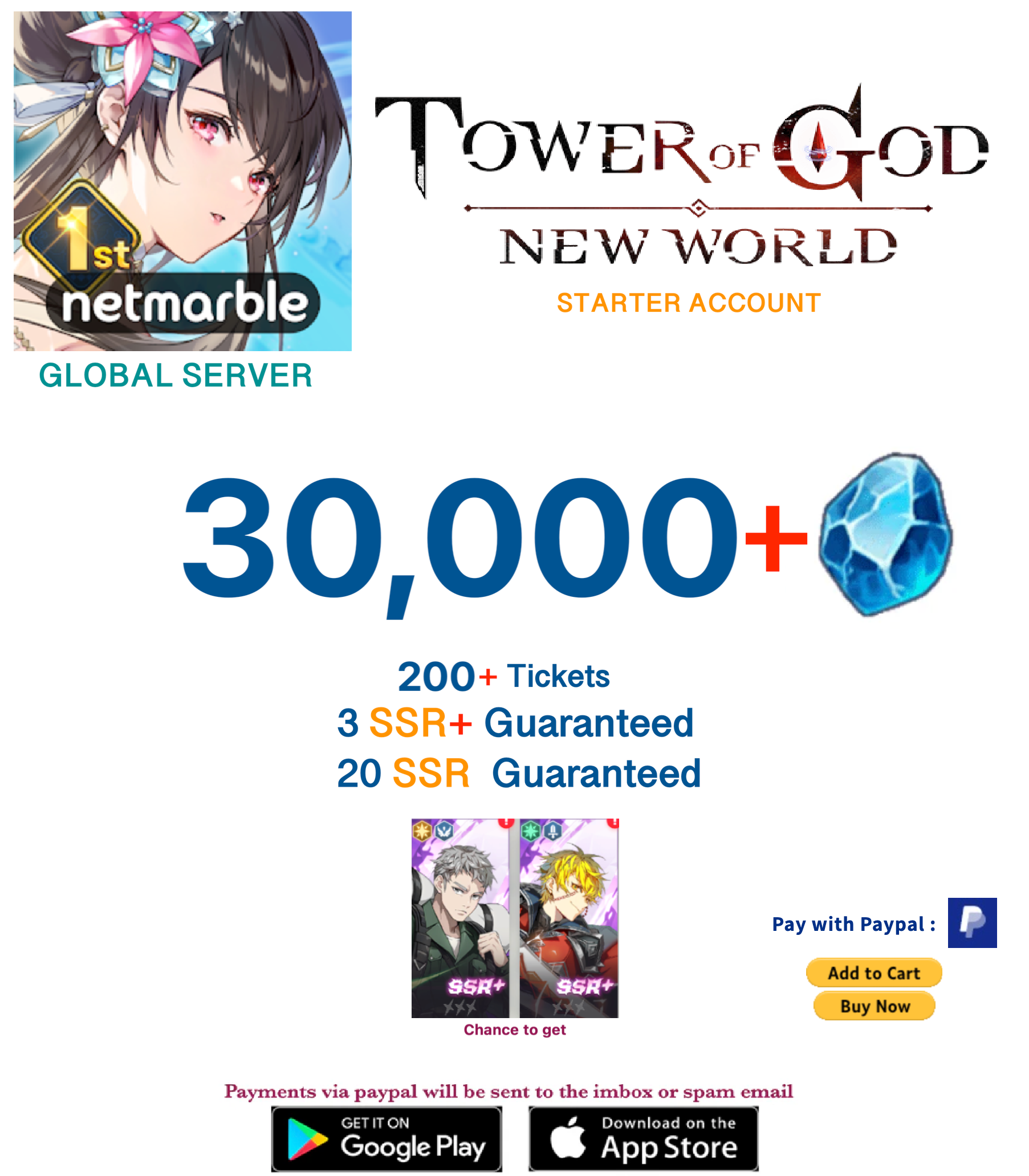 ⭐GLOBAL⭐INSTANT DELIVERY⭐ 30,000+ Gems Tower of God New World Starter Reroll Account