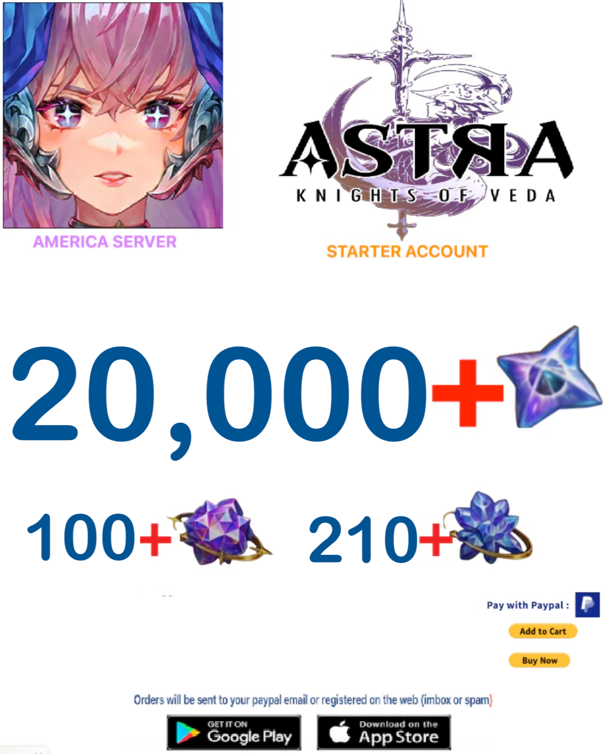 (America Server) 20,000 + Starstones Astra : Knights of Veda Starter Account