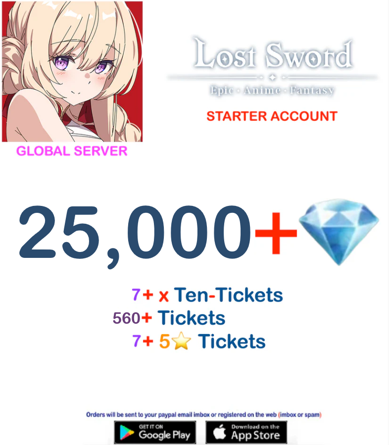 [Global Server] 25,000 + Gems Lost Sword Starter Account