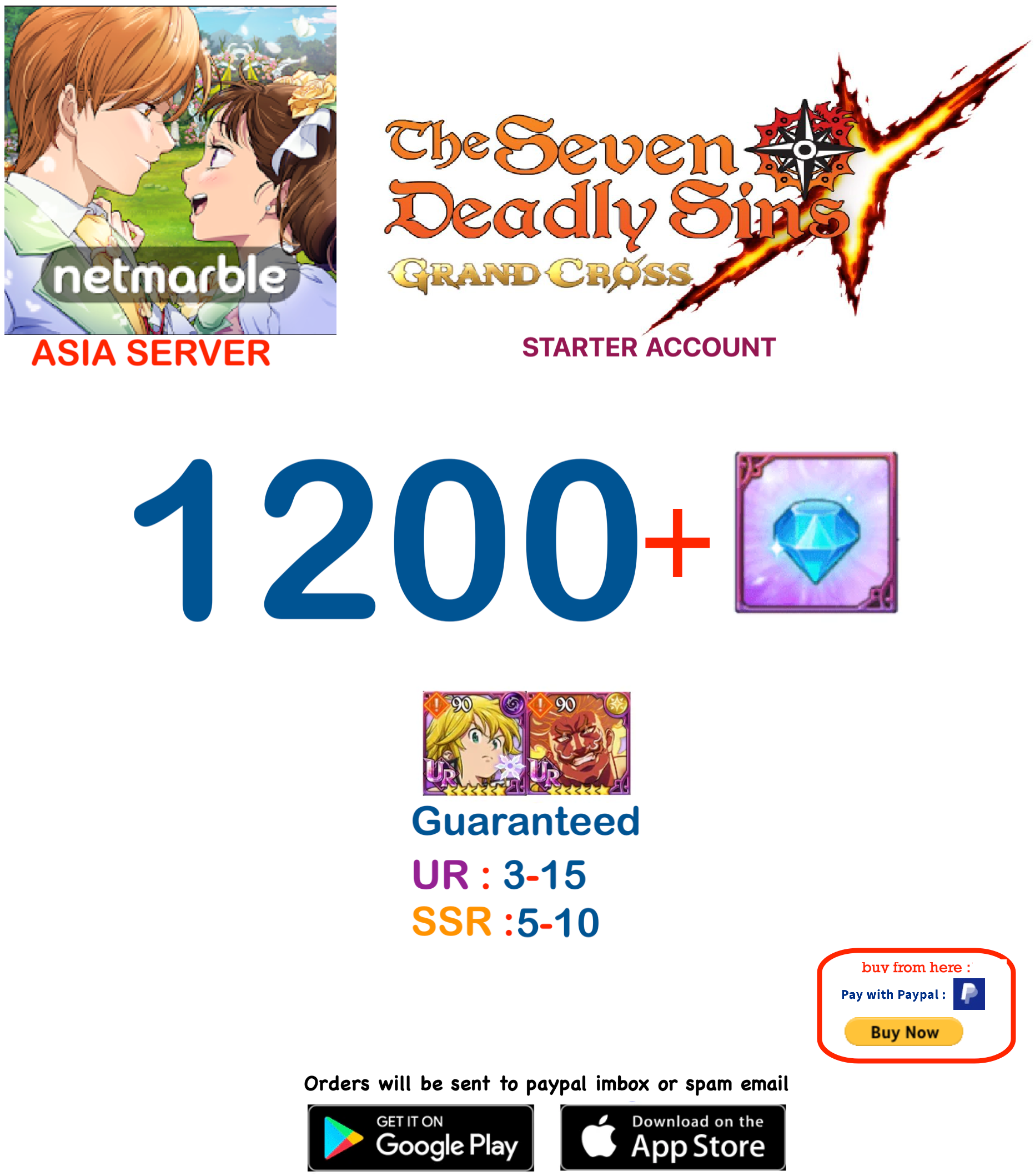 [Asia Server] 1200 + GEMS + 7DS Deadly Sins Grand Cross Starter Account