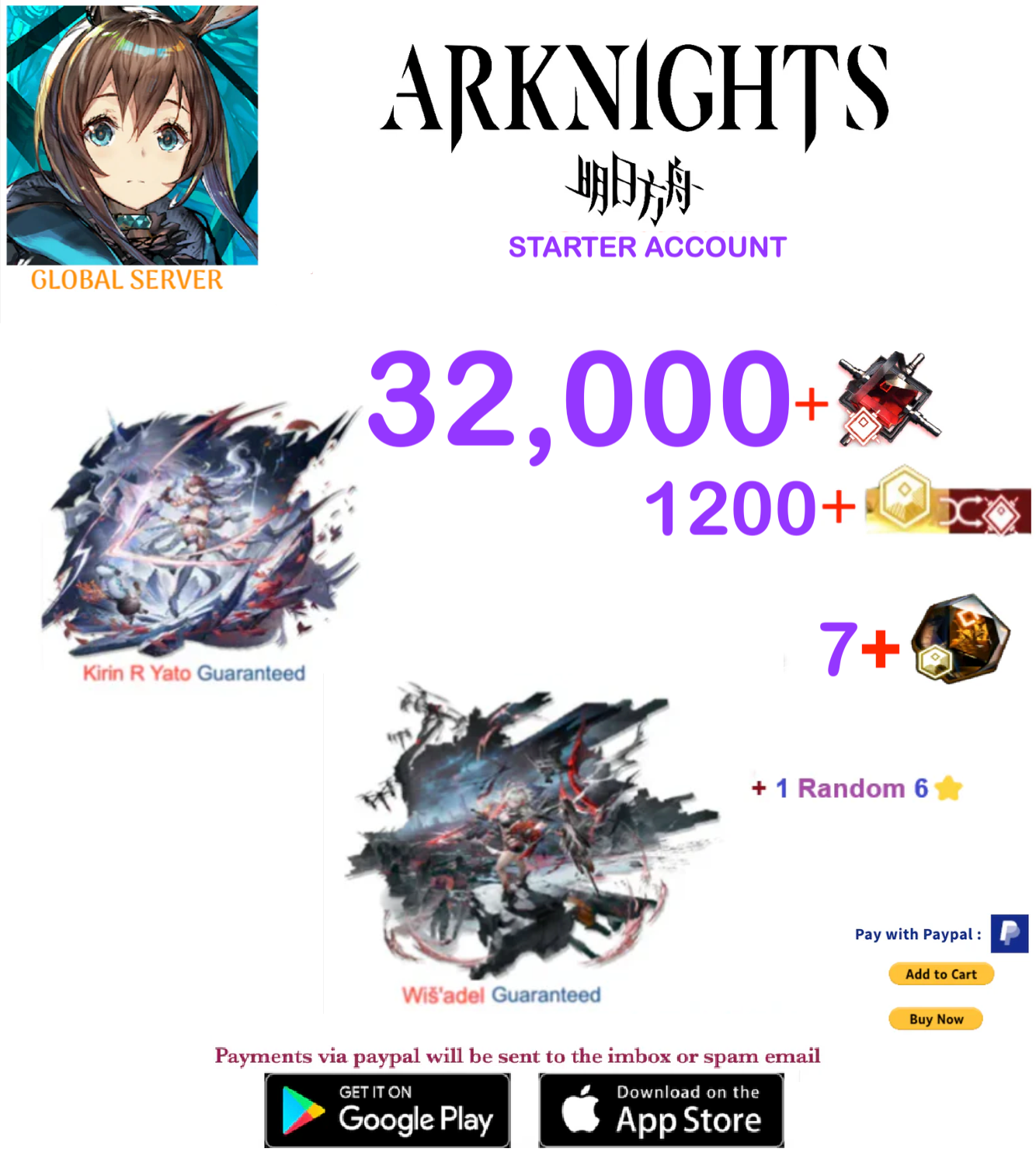[Global Server] 32,000 +Wiš'adel + Kirin R Yato + (1-2)6 ⭐Random Arknights Starter Account