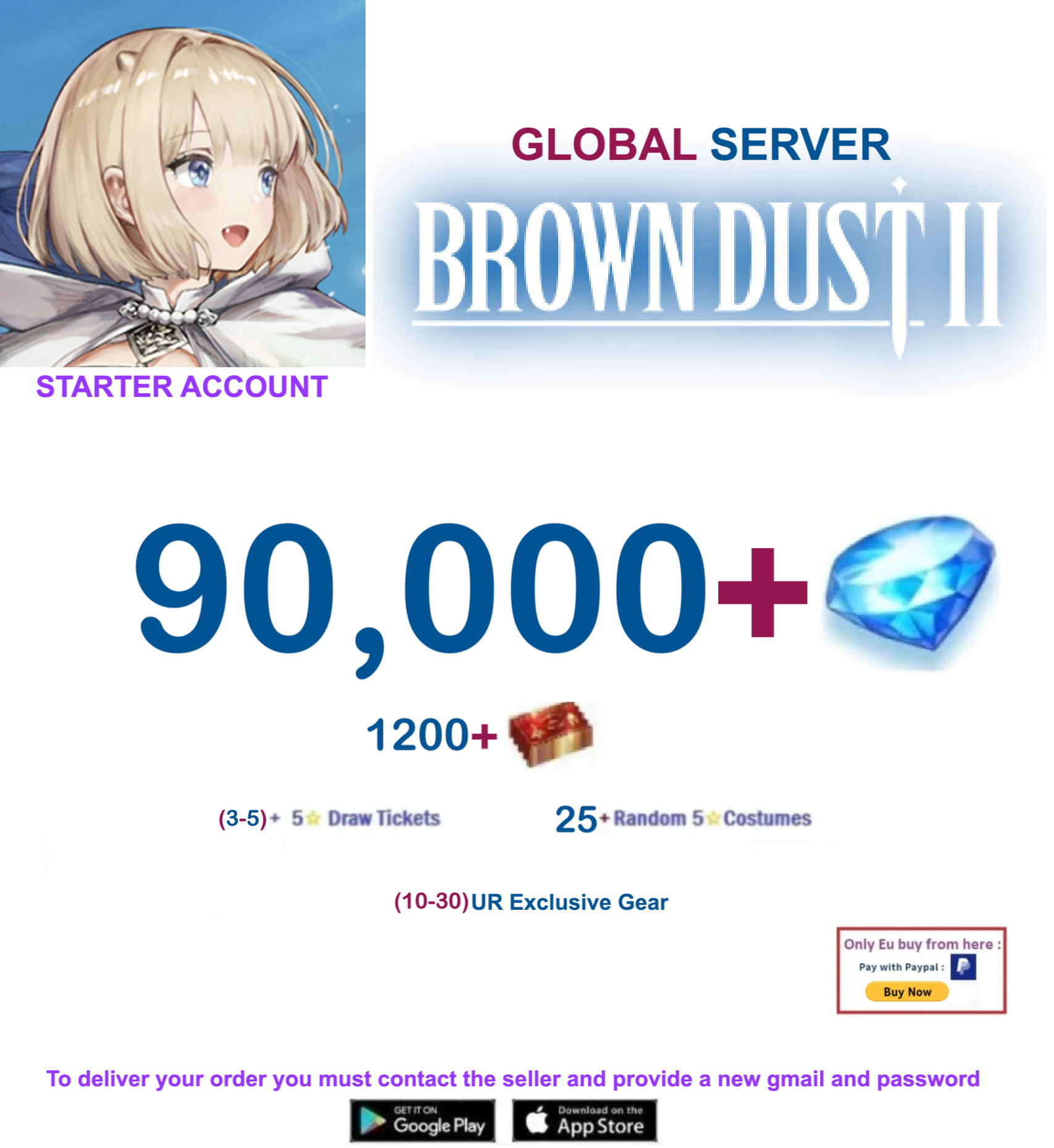 [Global Server/Unlinked] 90,000 Gems BDust 2 Starter Reroll Account