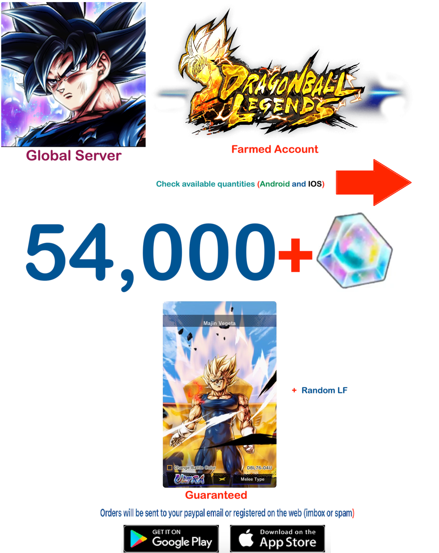 (Global Server)(Android-IOS VERSION) Majin Vegeta Dragon Ball Legends Farmed Account