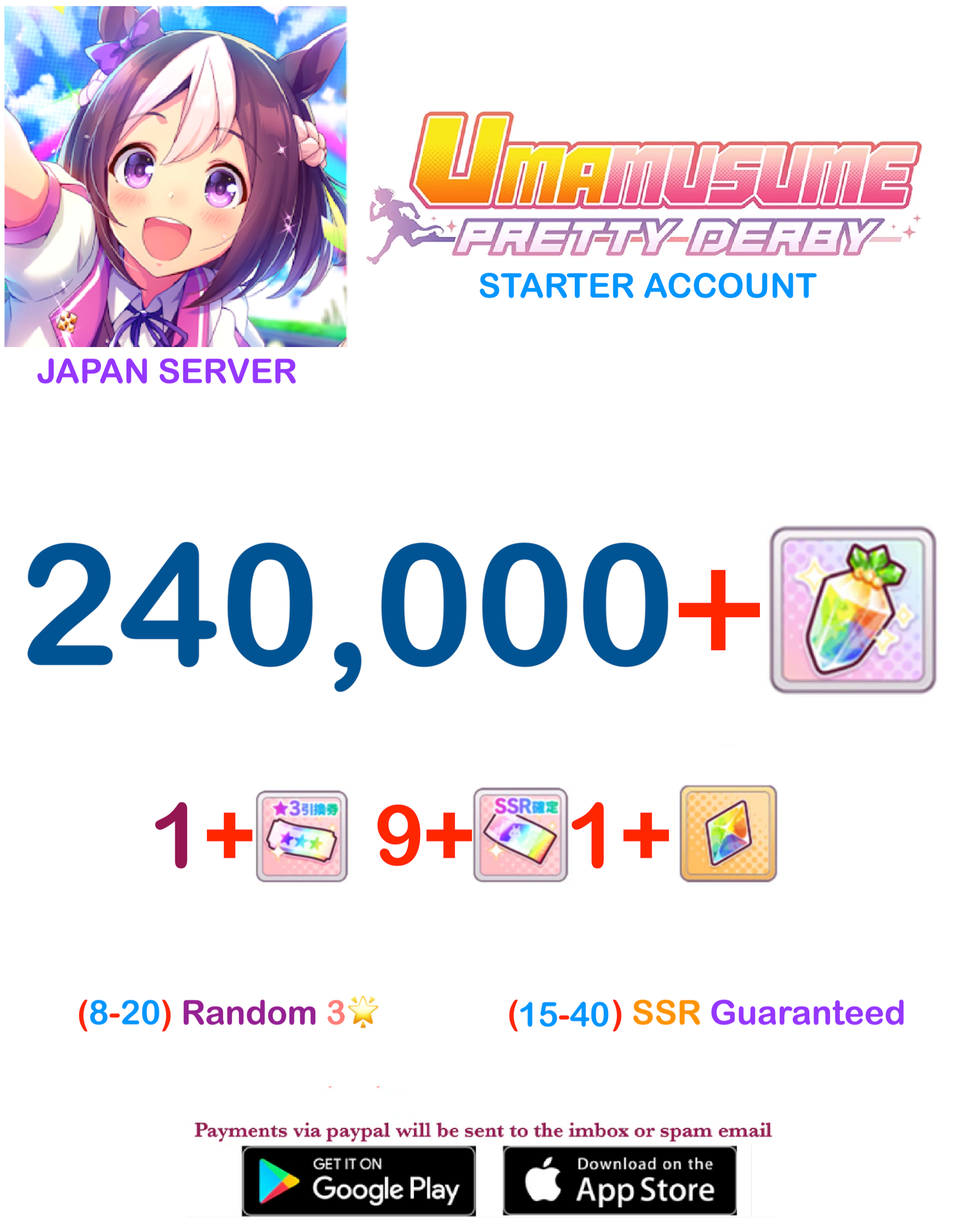 [JAPAN SERVER] 240.000 + Gems Uma Musume Pretty Derby Starter Reroll Account