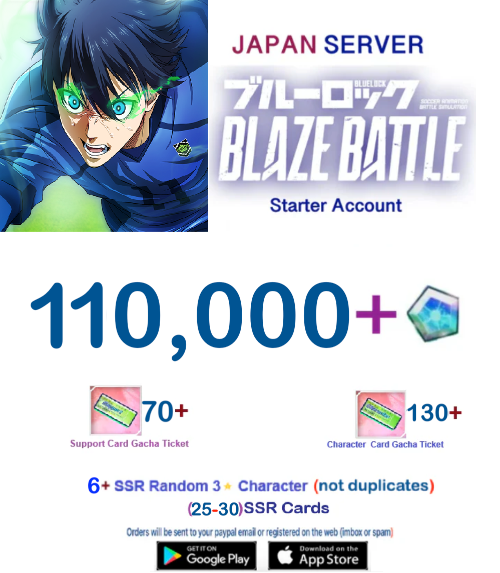 [Japan Server] 110,000 Gems +5SSR - BLUE LOCK BLAZE BATTLE Starter Account
