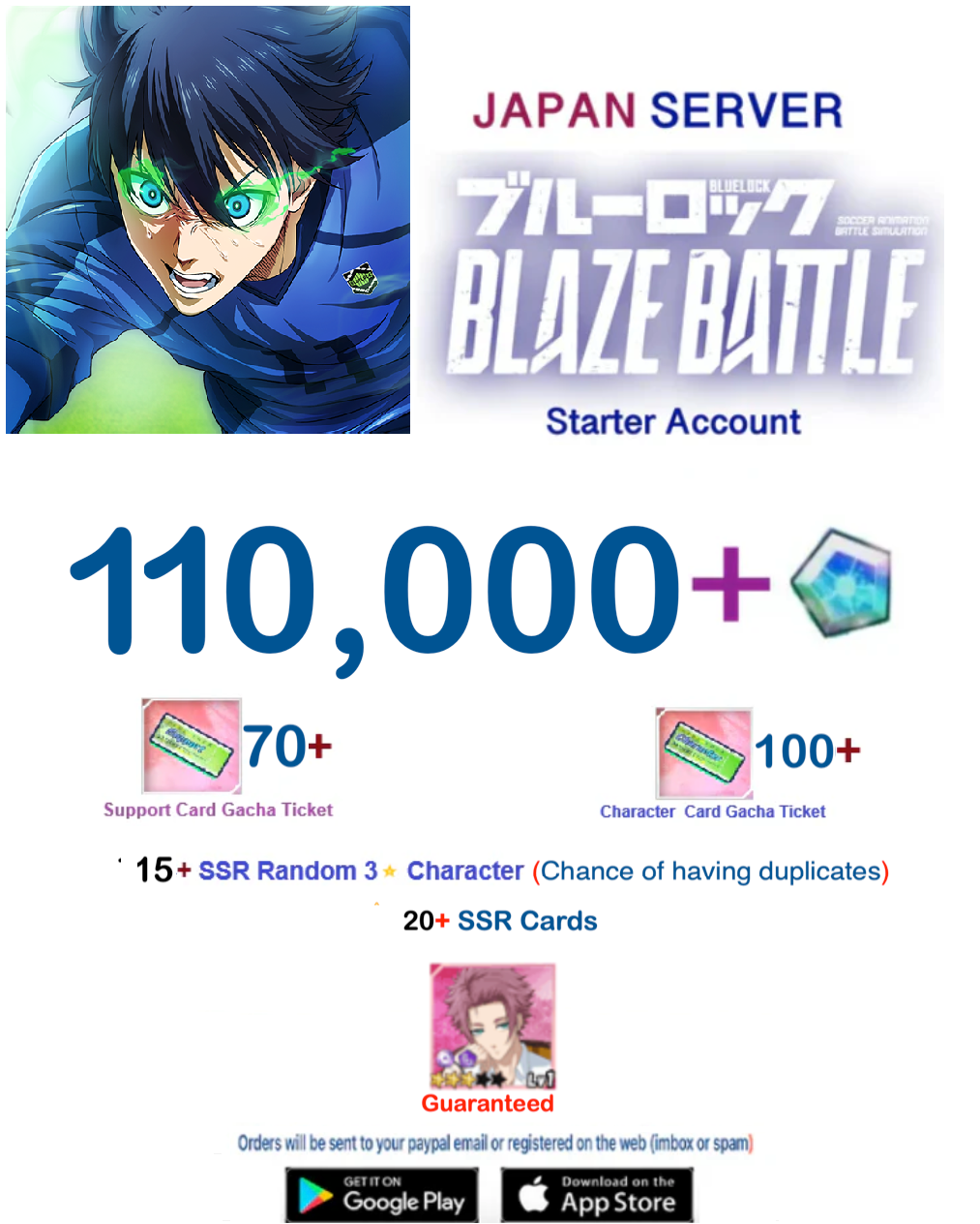 [Japan Server] 110,000Gems + BLUE LOCK BLAZE BATTLE Starter Account Ex1