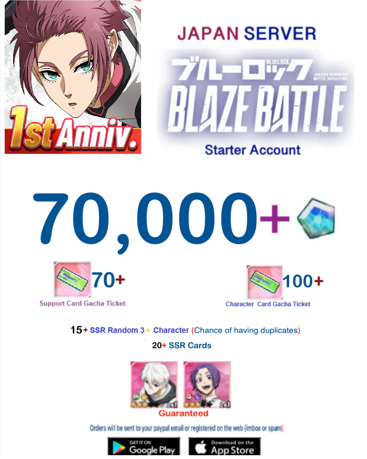 [Japan Server]70,000✯ + BLUE LOCK BLAZE BATTLE - Reroll Starter Account Ex2